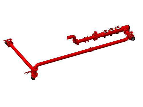 壓井管匯是油氣井壓力控制設(shè)備中的一個(gè)重要組成部分。它的作用是:當(dāng)不能通過鉆柱正常循環(huán)時(shí),可通過壓井管匯向井中泵入鉆井液,達(dá)到控制井壓的目的。壓井管匯的一端與鉆井四通側(cè)孔相連,一端和鉆井泥漿泵相連。